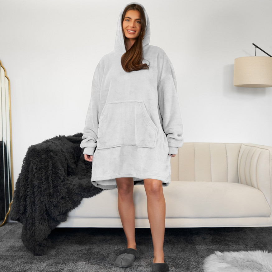 Hoodie pokrivač/deka s rukavima za odrasle-SVJETLOSIVA